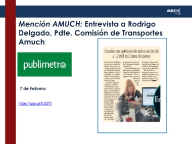 Mención AMUCH: Entrevista a Rodrigo Delgado, Pdte. Comisión de Transportes Amuch 7 de Febrero https://goo.gl/tLS2Tr