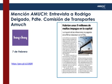 Mención AMUCH: Entrevista a Rodrigo Delgado, Pdte. Comisión de Transportes Amuch 7 de Febrero https://goo.gl/uUU6jW