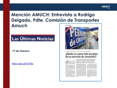 Mención AMUCH: Entrevista a Rodrigo Delgado, Pdte. Comisión de Transportes Amuch 19 de Febrero https://goo.gl/rDnTbo