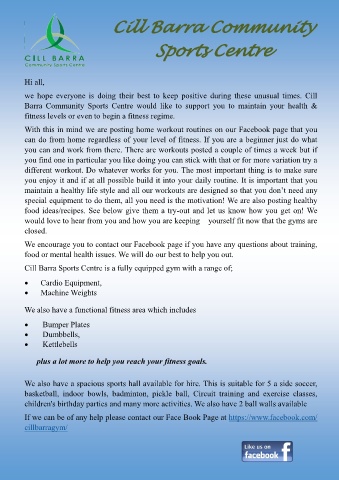 Cill Barra Sports Centre is a fully equipped gym with a range of;