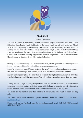 settling into his new role. As these times are uncertain Hugh and the rest of the MAD Club