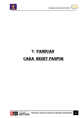 PANDUAN CARA RESET PASPOR 7. PANDUAN CARA RESET PASPOR DIREKTORAT SISTEM DAN TEKNOLOGI INFORMASI KEIMIGRASIAN 65
