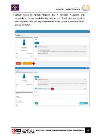 permasalahan dengan melakukan klik pada tombol “Ambil”. Jika tiket sudah di