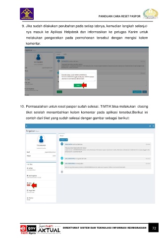 10. Permasalahan untuk reset paspor sudah selesai. TIMTIK bisa melakukan closing
