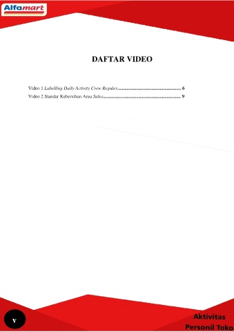 DAFTAR VIDEO Video 1 Labelling Daily Activity Crew Reguler...................................................... 6 Video 2 Standar Kebersihan Area Sales.................................................................. 9 v