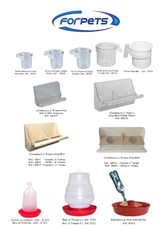 Comed. p/ Codorna - Ref.: JP 302 Beb. p/ Frango 2 L Ref. D723 Bebedouro p/ Aves Garrafa Pet