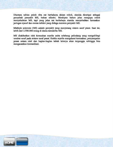 menyebabkan MS, tapi yang jelas zat berbahaya sianida menyebabkan kerusakan