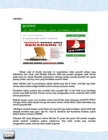 diakibatkan oleh rokok, yaitu Multiple Sklerosis (MS) atau penyakit gangguan saraf. Namun