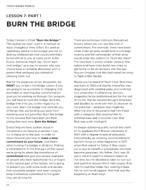 BURN THE BRIDGE Dick Hoyt burnt the bridge to what his commitment. If they say they’re committed