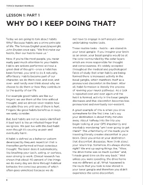 habits, then our habits make us.” your basal ganglia. If you imagine your brain the braking, the turns, the gentle pauses in MASTER the TRANSITION from one habit