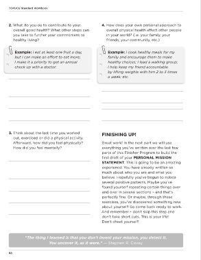 I make it a priority to get an annual healthy choices; I lead a walking group; the TOPUCU Finisher Program. Today we All of the sections you’ve completed prior