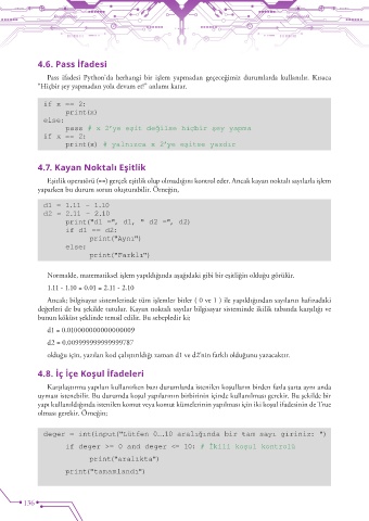 pass # x 2’ye eşit değilse hiçbir şey yapma