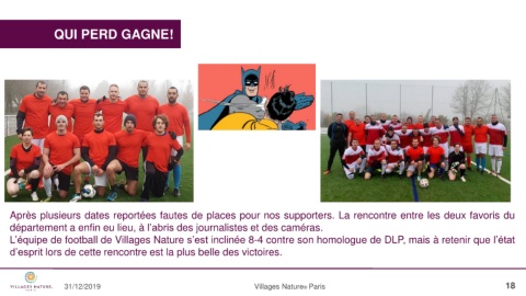 L’équipe de football de Villages Nature s’est inclinée 8-4 contre son homologue de DLP, mais à retenir que l’état