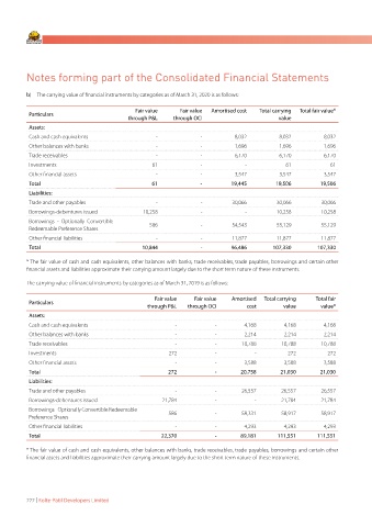 b) The carrying value of financial instruments by categories as of March 31, 2020 is as follows: