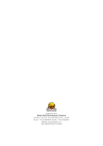 Registered office Kolte-Patil Developers Limited 2nd Floor, City Point, Dhole Patil Road, Pune – 411001 Tel. No.: +91-20-66226500, Fax No.: +91-20-66226511 Website: www.koltepatil.com CIN: L45200PN1991PLC129428
