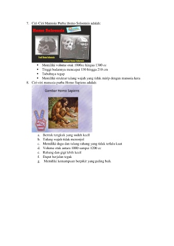 7. Ciri-Ciri Manusia Purba Homo Soloensis adalah:
