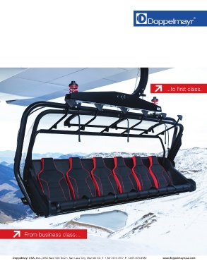 ...to first class. From business class ... Doppelmayr USA, Inc., 3160 West 500 South, Salt Lake City, Utah 84104, T: 1-801-973-7977, F: 1-801-973-9580 www.doppelmayrusa.com EARLY WINTER 2018 | NSAA JOURNAL | 23