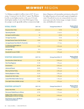 The Midwest recorded 6.3 million visits in 2017–18, up a share of beginner and intermediate participants, along with
