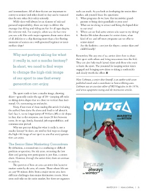 you saw a ski film with major segments about senior skiers 4. Besides lift ticket discounts for senior skiers, what
