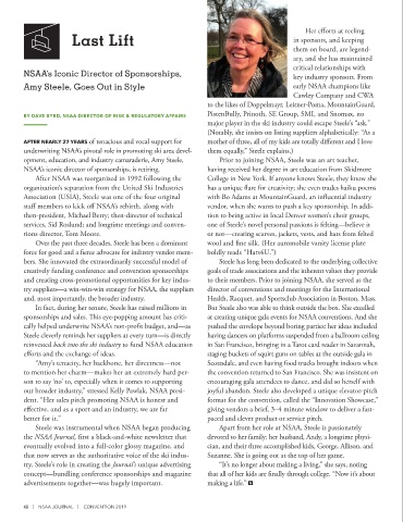 our broader industry,” stressed Kelly Pawlak, NSAA presi- joyful abandon. Steele also developed a unique elevator-pitch