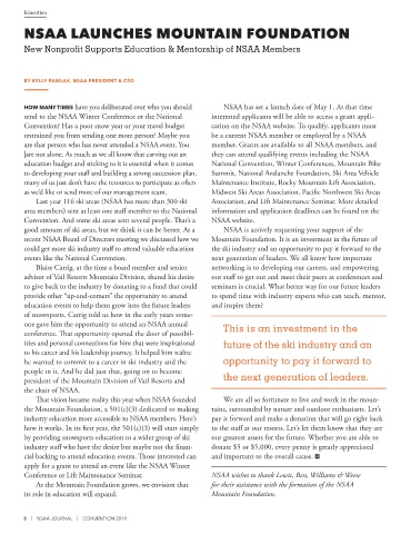 recent NSAA Board of Directors meeting we discussed how we Mountain Foundation. It is an investment in the future of
