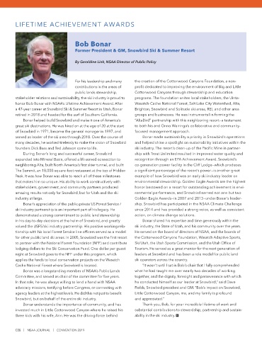 advocacy missions, testifying before Congress, or connecting with Fields, Snowbird president and GM. “Bob’s impact on Snowbird,
