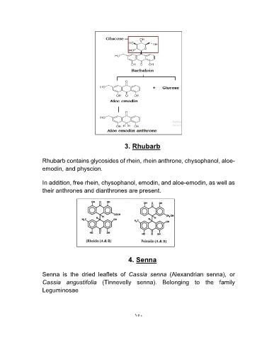 Rhubarb contains glycosides of rhein, rhein anthrone, chysophanol, aloe-