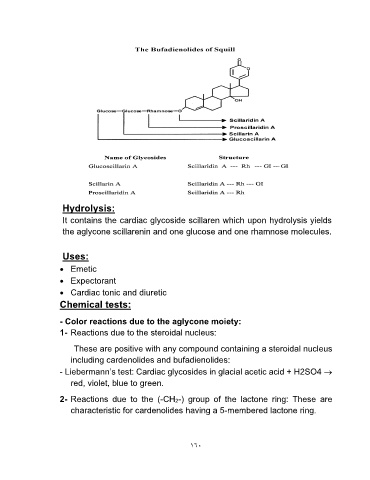 It contains the cardiac glycoside scillaren which upon hydrolysis yields