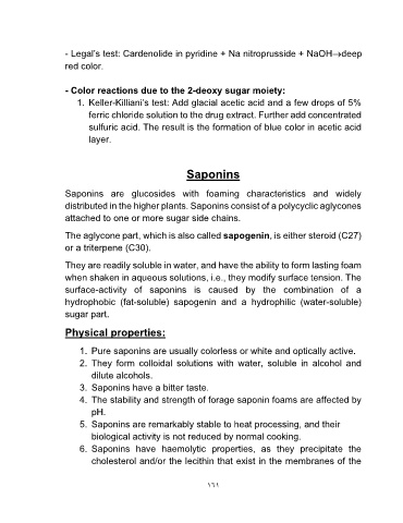 1. Pure saponins are usually colorless or white and optically active.