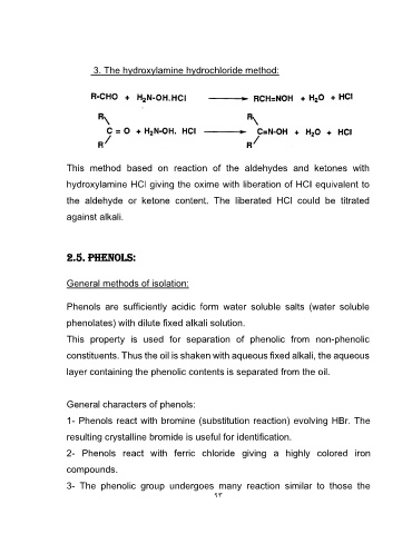 hydroxylamine HCl giving the oxime with liberation of HCI equivalent to