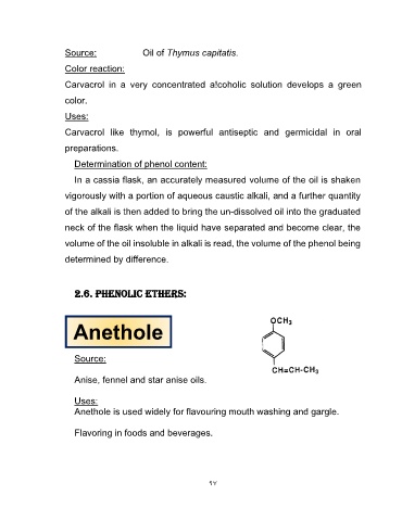 Carvacrol in a very concentrated a!coholic solution develops a green