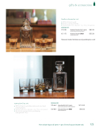 Prices include logo on all pieces + up to 3 lines of copy on decanter onlygifts & accessories125hudson decanter set• 24% full lead crystal• hand cut and polished• 5-piece set (13 oz. decanter + four 1½ oz. shot glasses)WHOLESALE COST99-034Hudson Decanter Set, 5 piece$85.00INCLUDES LOGO AND COPY ON DECANTER ONLY45-175Hudson Decanter ONLY$55.00INCLUDES LOGO AND COPYPlease note: Hudson Shot Glasses are only available plain, no etchexecutive bar set• 24% full lead crystal decanter and non-lead crystal glasses• 5-piece set (25 oz. decanter + four 10 oz. rocks glasses)• handsome presentation packaging (see general info)WHOLESALE COST99-664Executive Bar Set, 5 piece$110.00INCLUDES LOGO ON ALL PIECES, COPY ON DECANTER ONLY06-048Executive Decanter ONLY$80.00INCLUDES LOGO AND COPY