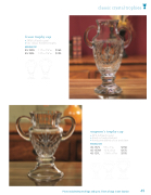fraser trophy cup• 24% full lead crystal• tall, classic handled trophyWHOLESALE COST45-180S11”h x 7¼”w$16545-180L12”h x 7¾”w$195emperor’s trophy cup• 24% full lead crystal• hand cut and polished• handsome blend of cut and clearWHOLESALE COST45-157S9”h x 7”w$15045-157M10”h x 8”w$17545-157L11¾”h x 9”w$195
