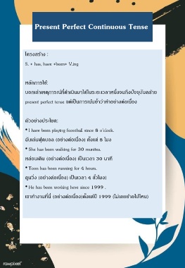 present perfect tense แต่เป็นกำรเน้นย ้ำว่ำท ำอย่ำงต่อเนื่อง