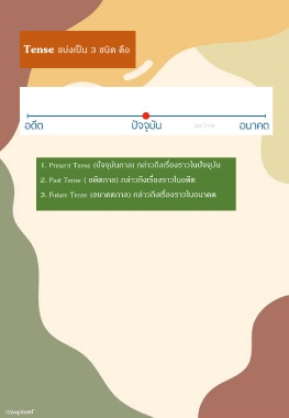 Tense แบ่งเป็น 3 ชนิด คือ 1. Present Tense (ปัจจุบันกำล) กล่ำวถึงเรื่องรำวในปัจจุบัน 2. Past Tense ( อดีตกำล) กล่ำวถึงเรื่องรำวในอดีต 3. Future Tense (อนำคตกำล) กล่ำวถึงเรื่องรำวในอนำคต