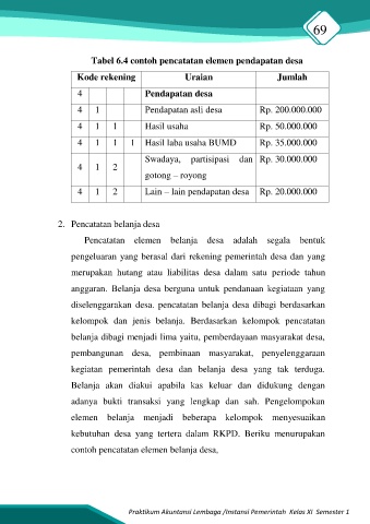 Tabel 6.4 contoh pencatatan elemen pendapatan desa