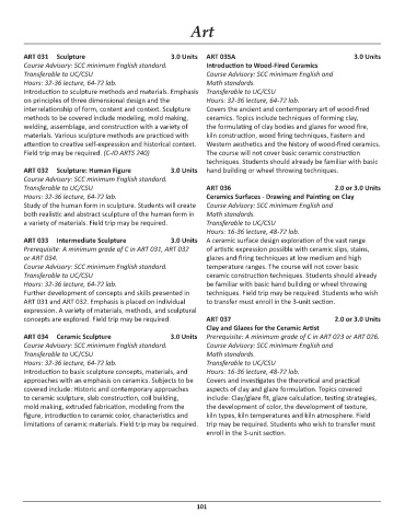 ART 033 Intermediate Sculpture 3.0 Units A ceramic surface design exploration of the vast range