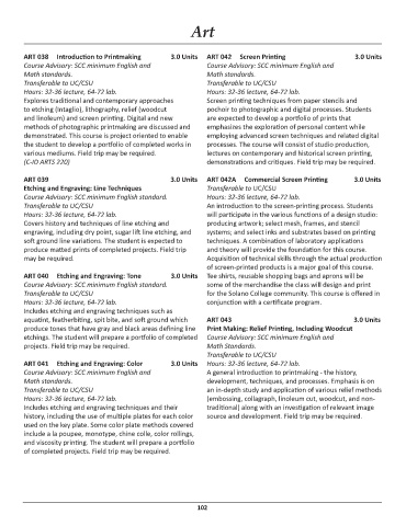 ART 038 Introduction to Printmaking 3.0 Units ART 042 Screen Printing 3.0 Units