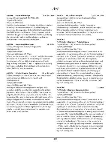 ART 074 Kiln Design and Operation 2.0 or 3.0 Units coherent body of work. This course is the first in a two