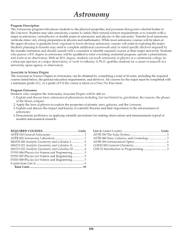 the Universe. Students may take astronomy courses to satisfy their natural sciences requirements or to transfer with a