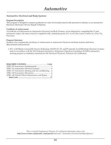 Students who complete the Certificate of Achievement in Automotive Electrical and Body Systems shall have