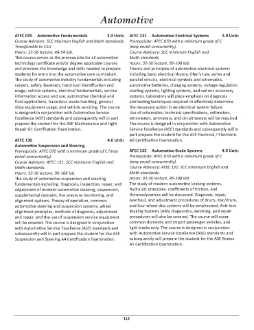 ATEC 070 Automotive Fundamentals 3.0 Units ATEC 131 Automotive Electrical Systems 4.0 Units