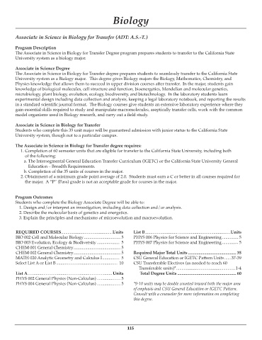 The Associate in Science in Biology for Transfer Degree program prepares students to transfer to the California State