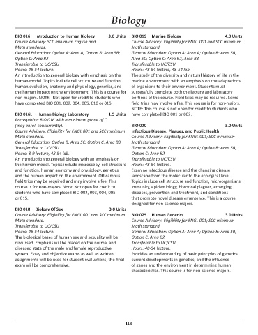 BIO 016 Introduction to Human Biology 3.0 Units BIO 019 Marine Biology 4.0 Units