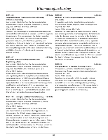 Baccalaureate degree program; Permission of faculty Emerging Trends in Biomanufacturing Quality