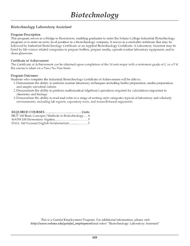 http://www.solano.edu/gainful_employment/and select “Biotechnology Laboratory Assistant”