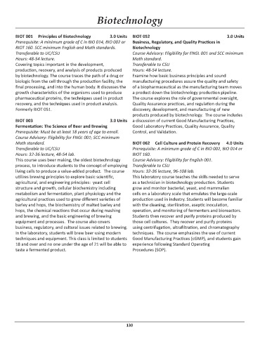 BIOT 001 Principles of Biotechnology 3.0 Units BIOT 052 3.0 Units