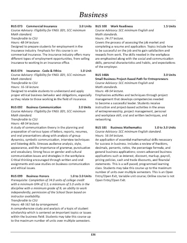 BUS 073 Commercial Insurance 3.0 Units BUS 100 Work Readiness 1.5 Units