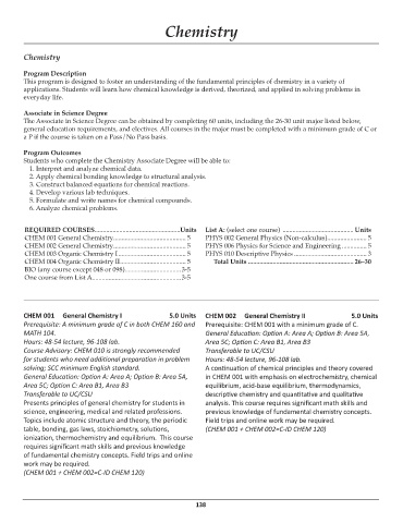 Transferable to UC/CSU descriptive chemistry and quantitative and qualitative