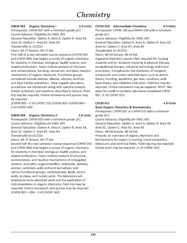 CHEM 003 Organic Chemistry I 5.0 Units CHEM 010 Intermediate Chemistry 4.0 Units